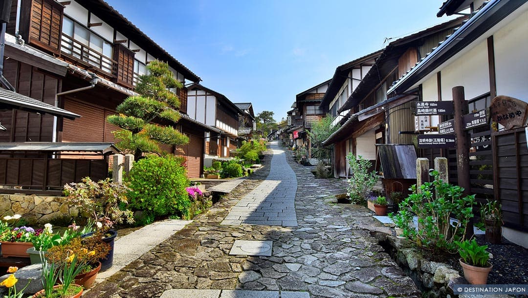 Le village de Tsumago est situé dans la vallée de Kiso à Nagano. Lors de la période Edo, il était l’une des 69 stations-relais sur la route Nakasendo qui permettait de relier Tokyo et Kyoto, en passant par les Alpes japonaises. Tsumago est l’un des villages les mieux conservés de la vallée, grâce aux travaux de rénovation entrepris dans les années 50. La rue principale bordée de maison en bois et les ruelles adjacentes permettent de se projeter dans le temps, à compléter par la visite des anciennes auberges Honjin et Wakihonjin, cette dernière étant reconvertie en musée.