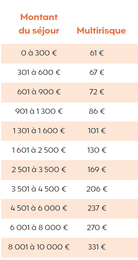 - En cas de perte par la compagnie et vol pendant le séjour : 2 000 €